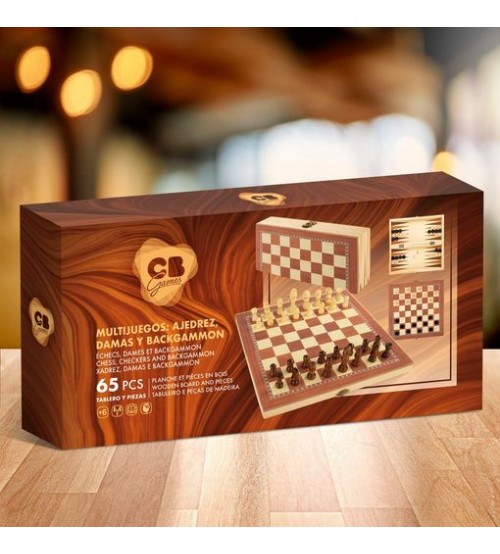 Galda spēļu komplekts - šahs/dambrete/nardi (koka). Piemērots bērniem no 6 gadiem. BRĪDINĀJUMI! Nav piemērots bērniem, kas jaunāki par 36 mēn! Komplektā sīkas detaļas! Nosmakšanas risks! Pirms rotaļlietu dodiet bērniem izņemiet to no iepakojuma. Ja uz tā ir svarīga informācija noglabājiet to bērniem nepieejamā vietā! Sargāt no uguns!