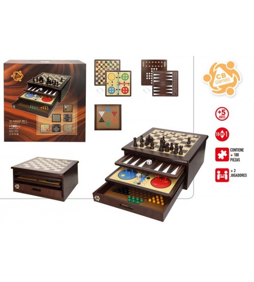 Galda spēļu komplekts 10 vienā ar koka uzglabāšanas kasti 5+ CB33074