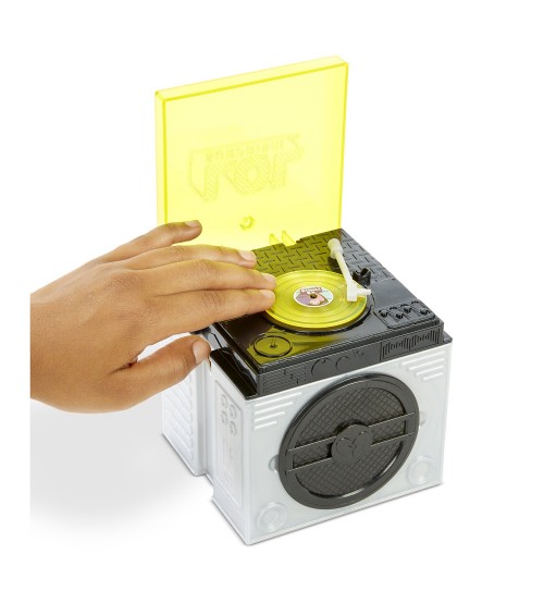 IZSAIŅO MŪSU DZIESMU: Iesaiņojums patiešām atskaņo mūziku! Izsaiņo kolekcionējamo mini ierakstu, lai patiešām atskaņotu pārsteiguma dziesmas daļu uz ierakstu atskaņotāja iepakojuma. Savāc, lai pabeigtu dziesmu.