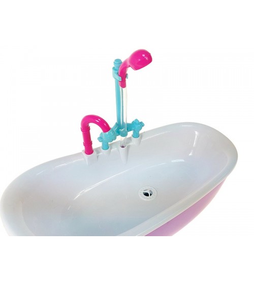 Atslēgvārdi: Leļļu vanna ar aksesuāriem gaisma, skaņa, no dušas tek ūdens (ar baterijām) 29 cm 613591
