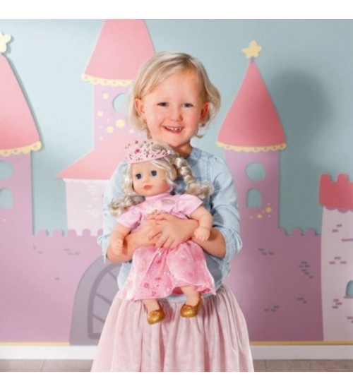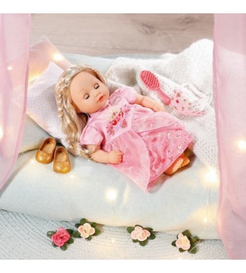Saldā mazā princese joprojām ir nedaudz kautrīga. Kad tu viņu noskūpstīsi, viņa pretī izdod skūpstu skaņas un viņas vaigi kļūst sarkani. Vai tas nav saldi? Lelle aizver zilās acis un sapņo par savu poniju (nopērkama atsevišķi). Un, kad viņš pirms aizmigšanas saņem ar labunakts skūpstu, viņš izdod saldas miega skaņas. 36 cm garajai lellei ir mīksts augums un kvalitatīvi gari blondi mati. Ir sava matu veidošanas suka. Viņas frizūra ir papildināta ar diadēmu ar mirdzošiem akmeņiem. No maģiskas rozā kleitas ar tilla volāniem paceļas spīdīgi zelta baleta plakniņi. Viegli pieguļošo kleitu var viegli uzvilkt un novilkt pat ar mazākajām rociņām.