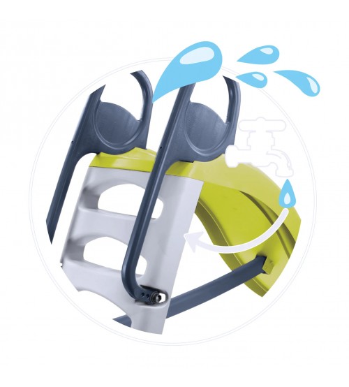 - Vasarā šim slidkalniņam var pievienot ūdens šļūteni, lai jautrāk nobrauktu baseinā, vai pat pašā baseinā;