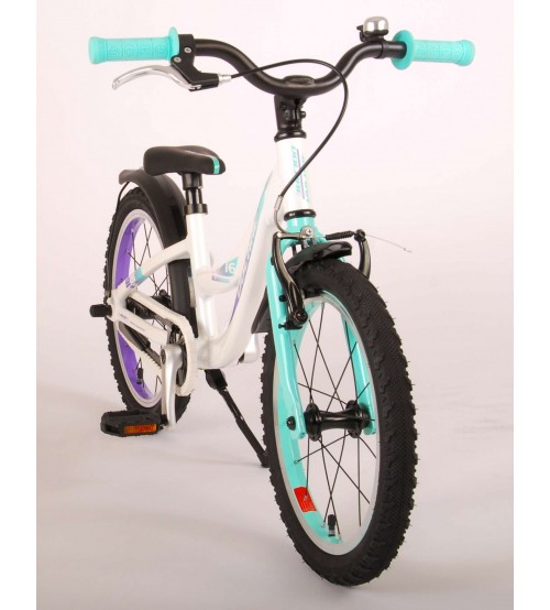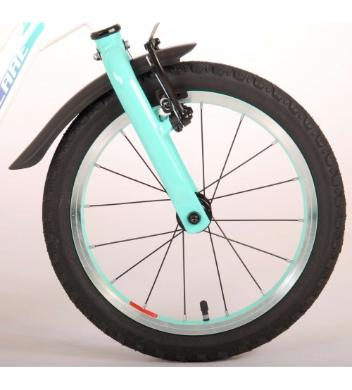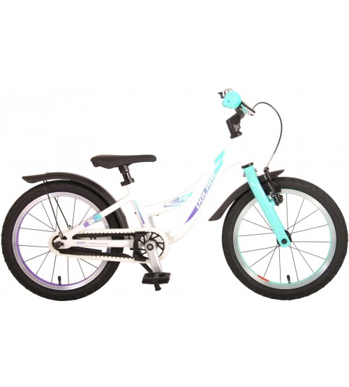 Volare Glamour 16 collu velosipēds apvieno visaugstāko kvalitāti ar modernu dizainu! Drošība pirmajā vietā! Tāpēc šim foršajam velosipēdam ir rokas bremze un bremze, kā arī ķēdes cilpa. Turklāt velosipēdam ir atstarotāji pedāļos un jauks zvaniņš. Ir padomāts arī par komfortu. Skaistajam, baltajam Volare velosipēdam ar piparmētru zaļiem akcentiem ir īpaši viegls alumīnija rāmis (tikai 6,5 kg!), ērti mīksti sēdekļi, no kratona izgatavoti rokturi un izturīgs statīvs, lai jūsu velosipēds vienmēr stāvētu glīti. Lai izbaudītu velosipēdu pēc iespējas ilgāk, tam ir īpaši garš sēdekļa statnis, lai velosipēds augtu kopā ar bērnu vēl ilgāk (stūres augstums nav regulējams). Īsāk sakot: augstākās kvalitātes velosipēds par lielisku cenu! Īsāk sakot: augstākās kvalitātes velosipēds, kas jūsu bērnam patiks daudzus gadus!