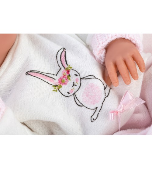 Lelle zīdainis Abril 42 cm (spilvens, raud, runā, ar mānekli, mīkstais ķermenis) Spānija LL74118