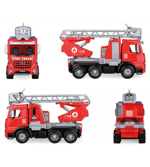 Atslēgvārdi: Ugunsdzēsēju mašīna ar pagarināmām kāpnem un ūdens strūklu Worxx Mercedes Arocs 52 cm L04615 kastē Lena Čehija