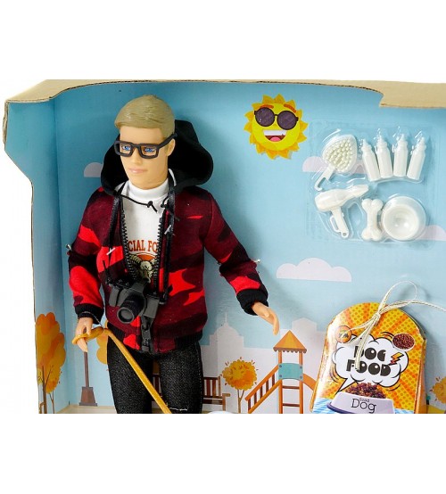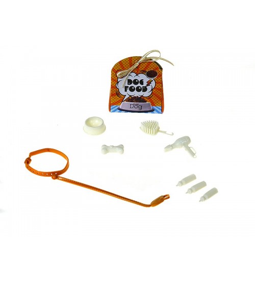 lelle 29cm, Kevins ar rej suni 12x5,5x5cm, jaka ar rāvējslēdzēju, suņu aksesuāri