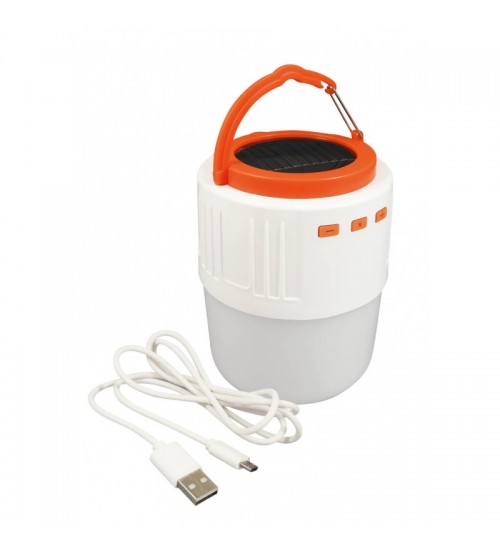 Uzlādē, izmantojot iebūvēto saules bateriju paneli vai USB kabeli. 3 apgaismojuma režīmi.