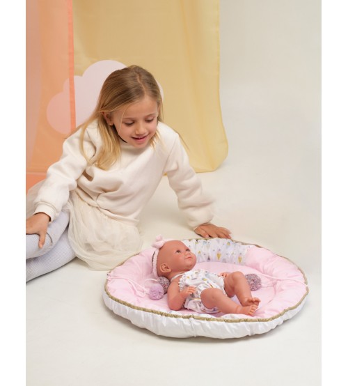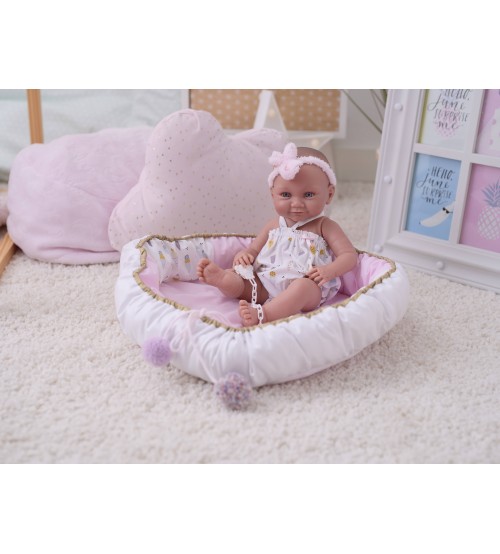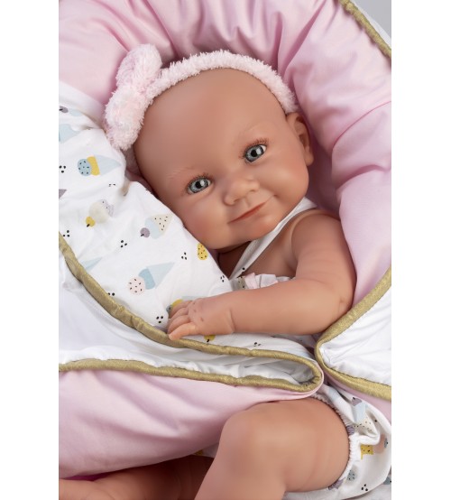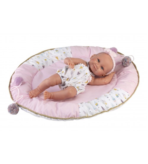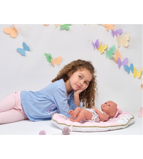 Lelle zīdainis Nica meitene ar spilvenu un mānekli (vinila ķermenis) 40 cm Spānija LL73806