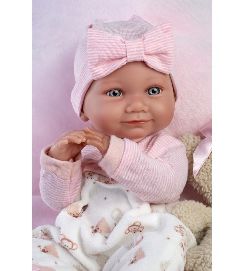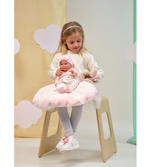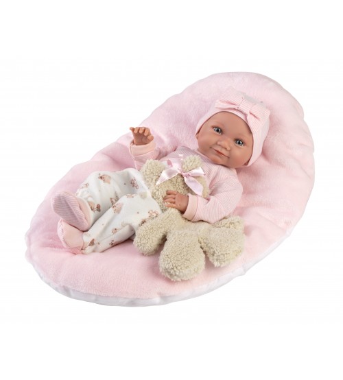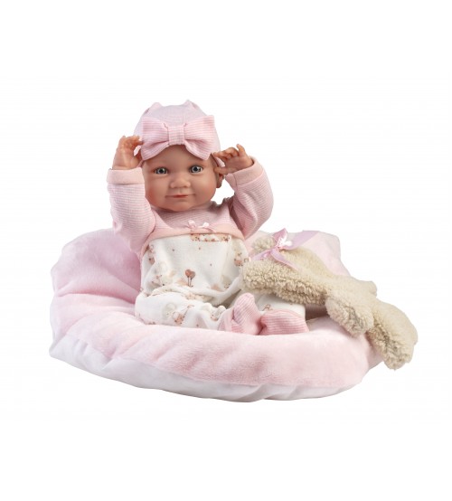 Lelle zīdainis Nica meitene ar spilvenu un mānekli (vinila ķermenis) 40 cm Spānija LL73808