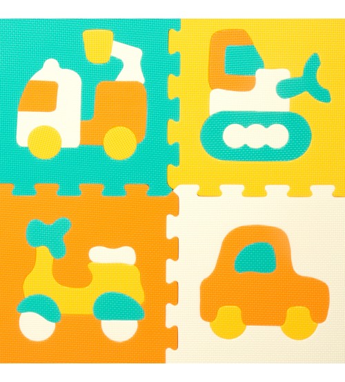 Paklājiņš mazuļiem Puzzle EVA Transports (9 kvadrāti, 32x32 cm ) no 10 men. CB39128