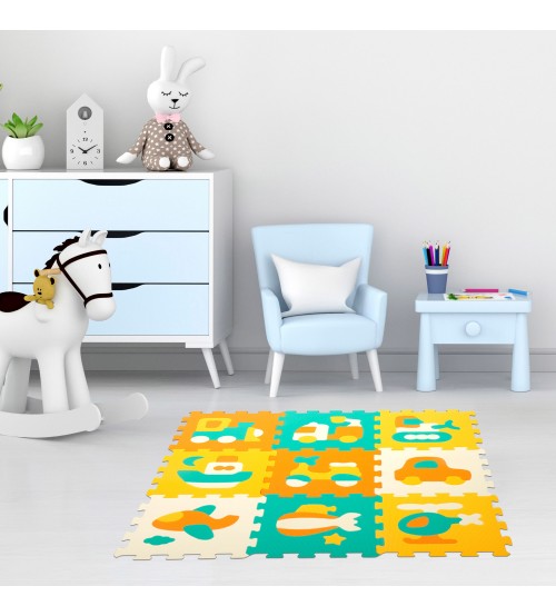 Atslēgvārdi: Paklājiņš mazuļiem Puzzle EVA Transports (9 kvadrāti, 32x32 cm ) no 10 men. CB39128