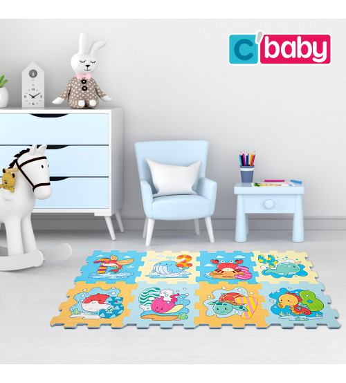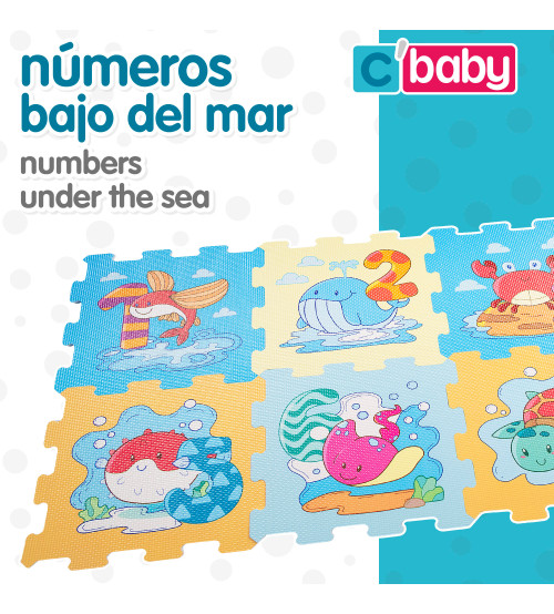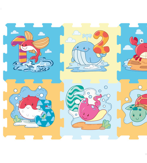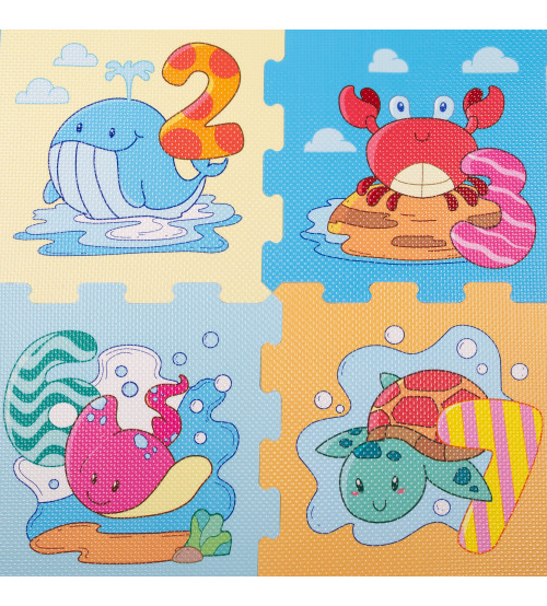 Paklājiņš puzle Jūras dzīvnieki un cipari, 8 gab. (30 x 30 cm katrs) Eva gumija, +10 mēn. CB47157